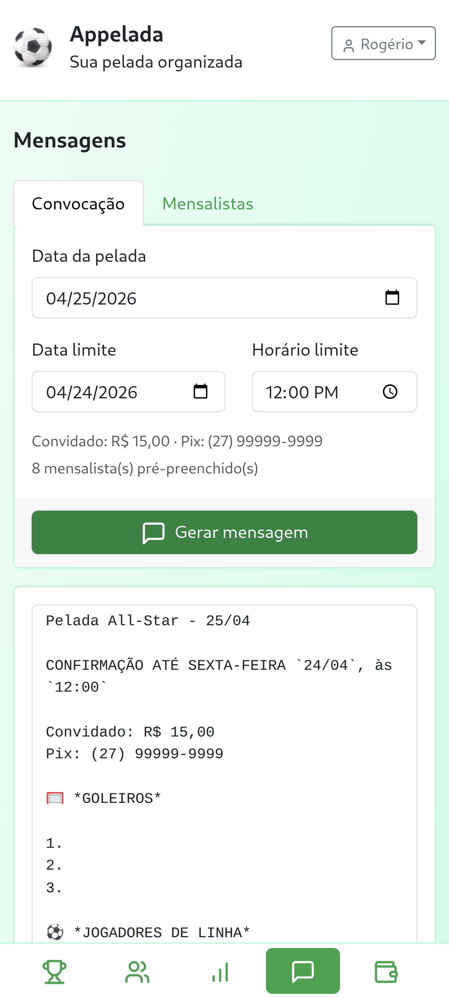 Informações da pelada